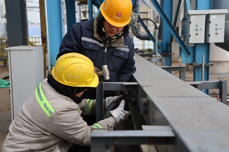 “15.21廢料運輸皮帶無法啟動!”時間緊任務重,得到此消息后,生產技術部90后“小將”們和富平公司援建單位老師傅集思廣益、破解難題,經反復摸排找出影響皮帶正常運轉的癥結所在,迅速行動解決問題。說干就干。在富平公司老師傅的帶領下,他們當機立斷對皮帶擋料皮及托輥進行拆卸組裝。“短短兩天時間,我們就完成了拆除,并重新固定組裝100米擋料皮,修理安裝50個皮帶托輥,保障了設備的正常運轉。”該公司青年職工薛鵬超驕傲地說。